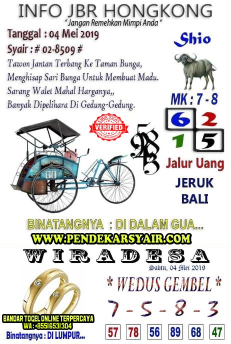 Syair Togel Hongkong Hari ini 04 Mei 2019 Syair Togel Online